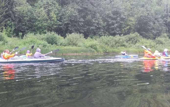 Участвуя в этом многодневном водном походе первой категории сложности, наиболее подготовленные школьники-туристы из кировского ДЮЦ, вместе с выпускниками Центра и родителями прошли на байдарках и каяках в общей сложности около двухсот непростых километров.