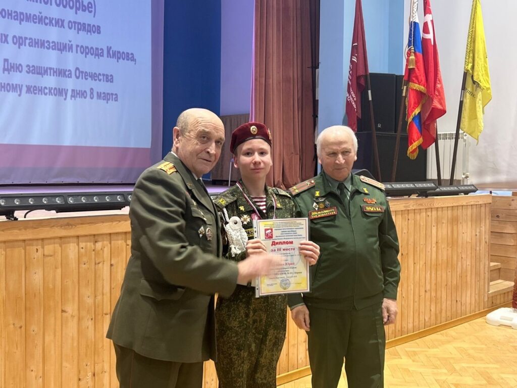 На торжественной церемонии награждения лучшие многоборцы города Кирова в командном и личном зачёте, в том числе в отдельных видах, получили от организаторов соревнований из ДЮЦ им. А. Невского дипломы, грамоты, кубки, медали и призы с юнармейской символикой.