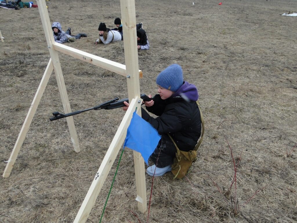 В апреле, уже в полевых условиях, на территории аэродрома ДОСААФ в Порошино участники «Зарницы 2.0» пробуют себя в роли командиров, снайперов, штурмовиков, саперов. Школьники ориентируются на местности, метают гранаты, участвуют в тактических перестроениях и атаках, проявляют себя в огневой подготовке: стреляют из пневматической винтовки, разбирают и собирают на скорость автомат Калашникова, снаряжают магазин патронами.