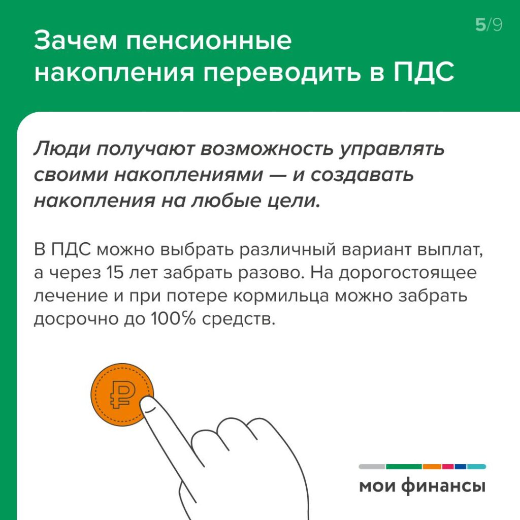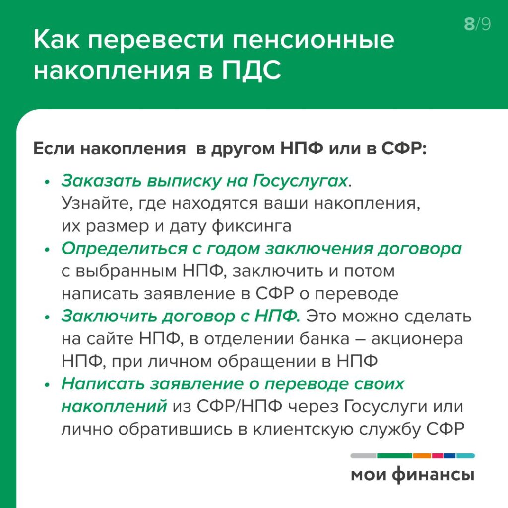 Как перевести пенсионные накопления в Программу долгосрочных сбережений (ПДС)? Ответ на этот актуальный вопрос в доходчивой форме дают карточки, подготовленные Минфином РФ.