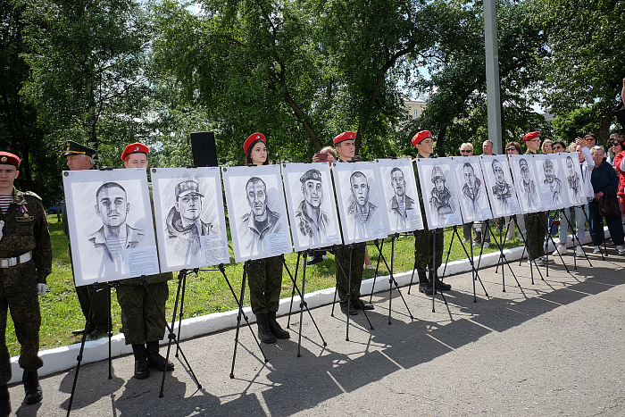 Церемония состоялась в сквере у областного Дома народного творчества, откуда отправлялись в зону специальной военной операции мобилизованные кировчане. Участниками мероприятия стали губернатор Кировской области Александр Соколов, депутат Государственной Думы Мария Бутина, главы города Елена Ковалева и горадминистрации Вячеслав Симаков, митрополит Вятский и Слободской Марк, директор ДЮЦ им. А. Невского Альбина Покручина, бойцы СВО и члены их семей, ветераны, представители общественных патриотических организаций и силовых структур. Кировские юнармейцы и кадеты – воспитанники Центра имени Александра Невского – вошли в состав Знаменной группы и встали в Почетный караул у портретов героев-земляков, погибших в ходе проведения специальной военной операции.