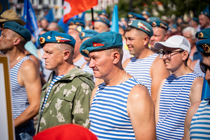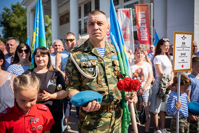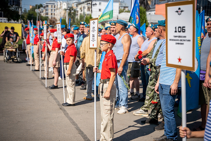 Многочисленные колонны ветеранов-десантников были построены по принадлежности к конкретным войсковым частям. Таблички с названиями и номерами прославленных десантных соединений гордо держали в руках лучшие кировские юнармейцы – воспитанники Центра Александра Невского. Их товарищи – будущие защитники Отчизны – встали в Почетные караулы.