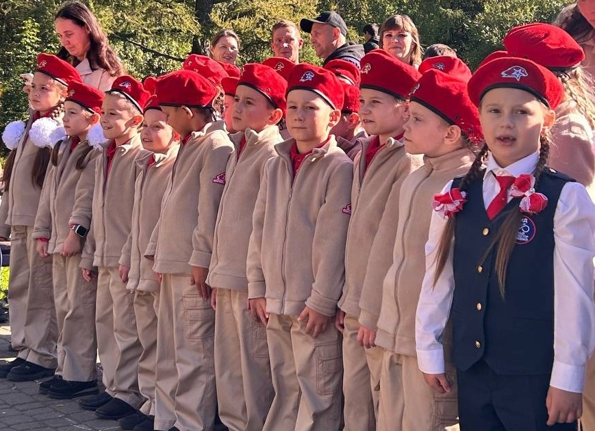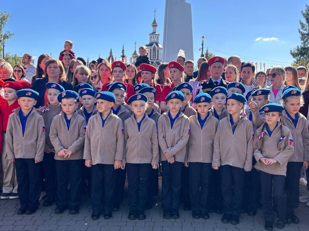 После того, как школьники дали торжественную клятву на верность Отечеству и Юнармии, почётные гости, педагоги, родители и старшие товарищи прикололи на грудь новобранцам юнармейские значки, символизирующие принадлежность к дружному братству юных патриотов.