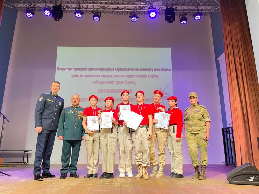 В число призёров ежегодных городских состязаний вошли сборные юнармейских отрядов из кировских школ №№ 4, 10, 25, 48, 54. На итоговой торжественной церемонии лучшие многоборцы, отличившиеся в командном и личном зачете, в том числе в отдельных дисциплинах, получили заслуженные награды: дипломы, грамоты, кубки, медали и значки с юнармейской символикой.