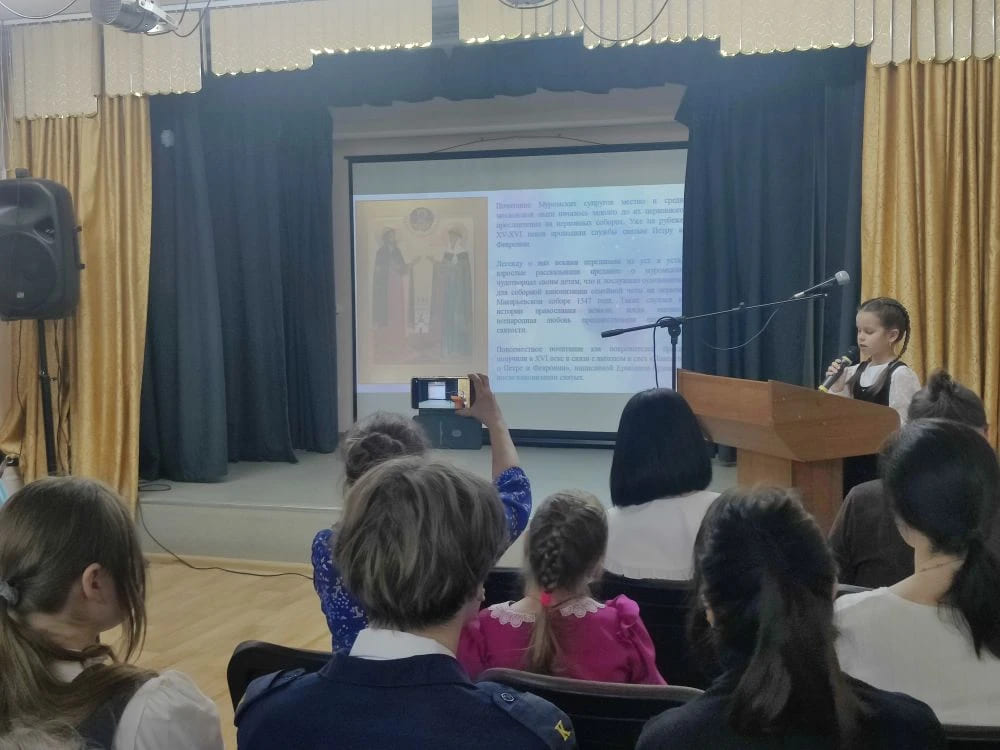 Учащаяся Гимназии им. А. Грина Полина Устюжанинова рассказала об истории своей фамилии, которую она узнала с помощью «Книги вятских родов». Воспитанница воскресной школы храма в честь Рождества Пресвятой Богородицы Екатерина Кротова познакомила собравшихся с подвигом родного дяди, который, спасая сослуживцев, погиб во время чрезвычайной ситуации и был награжден посмертно орденом Мужества. Героями исследовательских работ стали также наши знаменитые земляки: выдающийся русский бас Фёдор Шаляпин, легендарный советский снайпер, Герой РФ Николай Галушкин, прославленная конькобежка Мария Исакова.