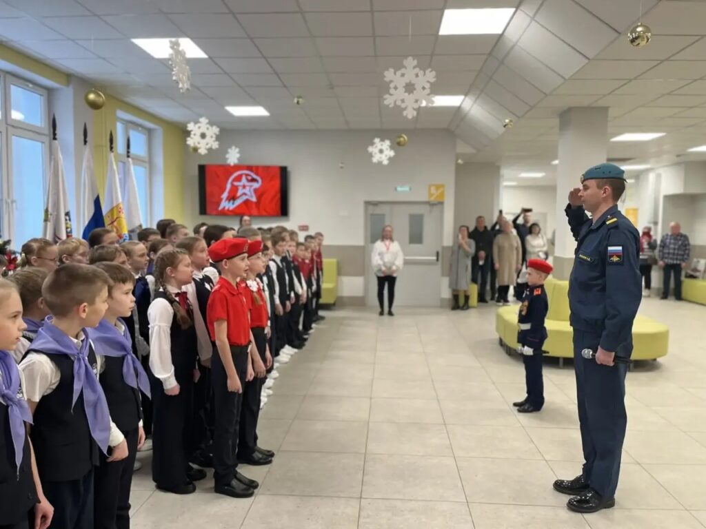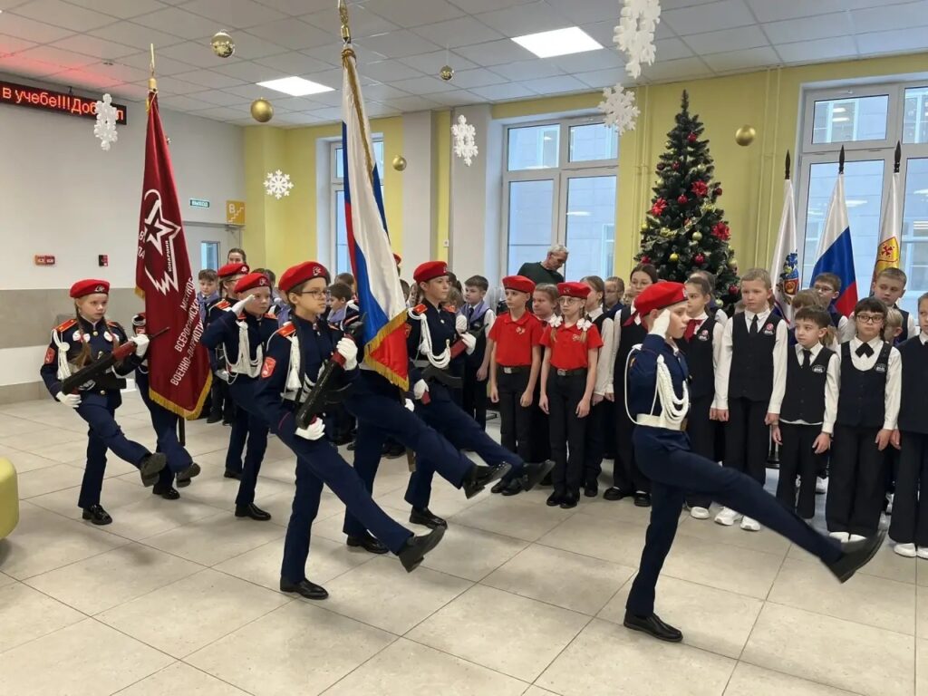 Детско-юношеский центр имени Александра Невского организовал торжественную церемонию посвящения учащихся Кировского физико-математического лицея в кандидаты в члены Юнармии.